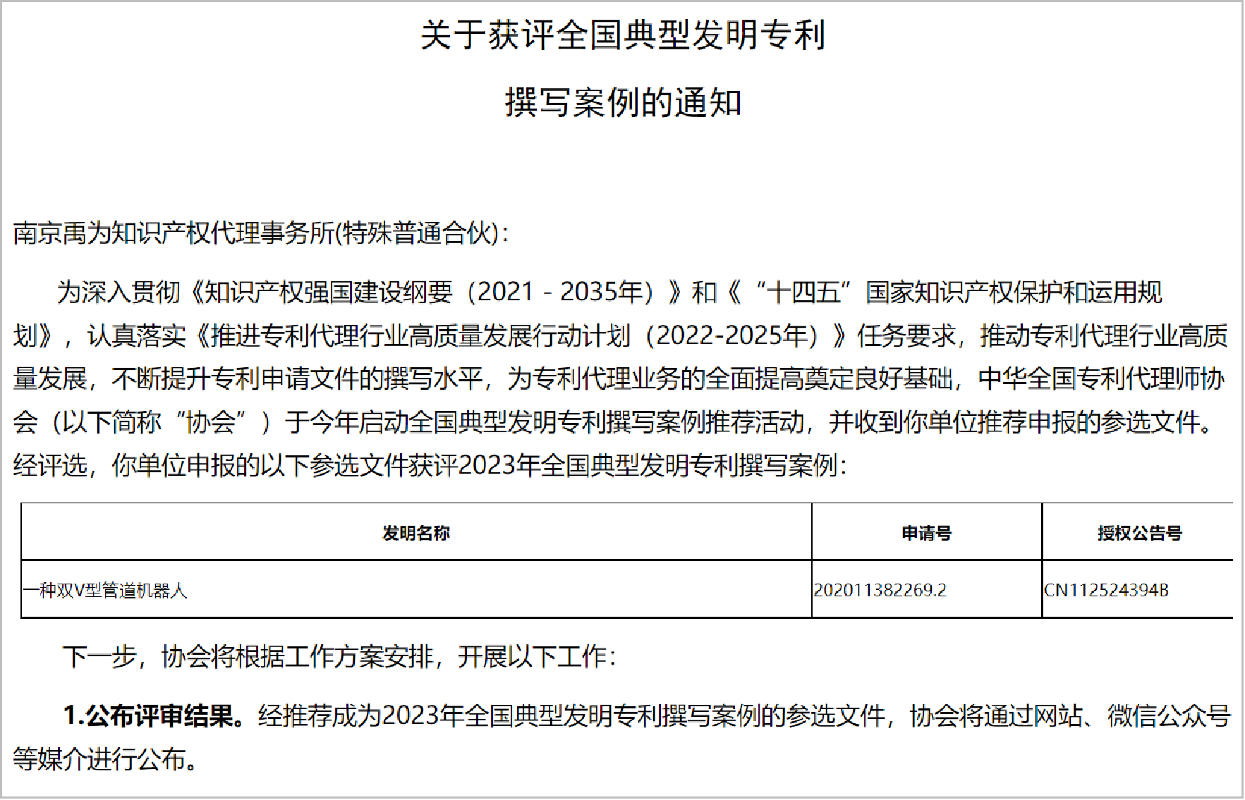 南京禹为知识产权代理事务所(特殊普通合伙),注册资本600万元,是经中国国家工商总局、中国国家知识产 权局核准设立的知识产权代理机构(机构代码:32272),专业从事“ 知识产权申报(包含专利、商标、著作权的申请代理)、国际专利申请(包含PCT申请及通过巴黎公约进入海外国家)、专利挖掘与布局、高价值专利培育、专利情报分析(包含FTO、专利导航、知识产权分析评议、技术查新、价值和资产评估等)、专利技术转移转化、知识产权诉讼、科创板知识产权辅导上市、企业资质和项目申报、知识产权培训 ”等全方位的知识产权服务。为包括在华500强企业、发达国家驻华使领馆、国内高校等在内的客户提供全方位 的知识产权服务。我们与美国、欧洲、日本等国的事务所均有良好的合作,能够为客户直接提供专业的高品质专利代 理服务。